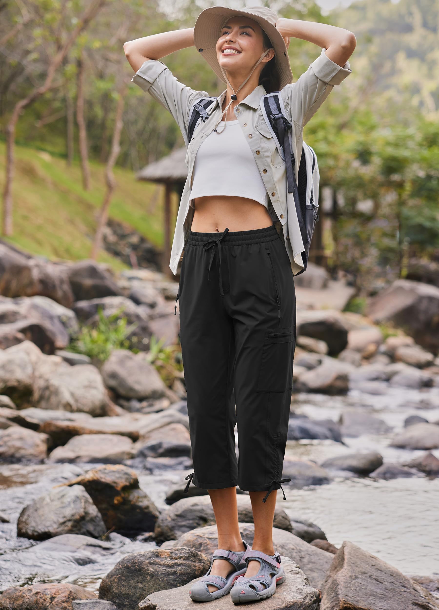- Adjustable Cord Lock Design : The hiking capri pants takes into account the design of outdoor function and comfy experience. The overall cut fits and adjustable cord lock design change a variety of pants shape. Suitable for regular and loose fitting, offers feel relax and freedom during wearing